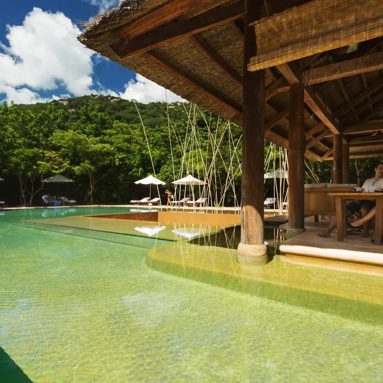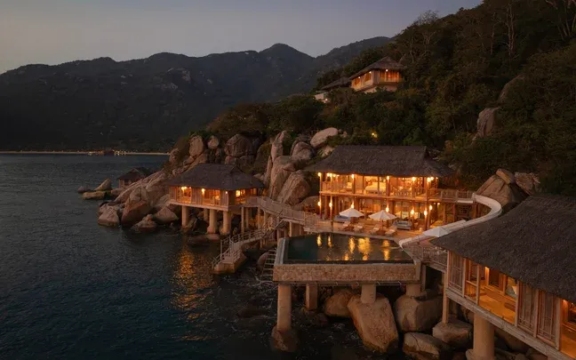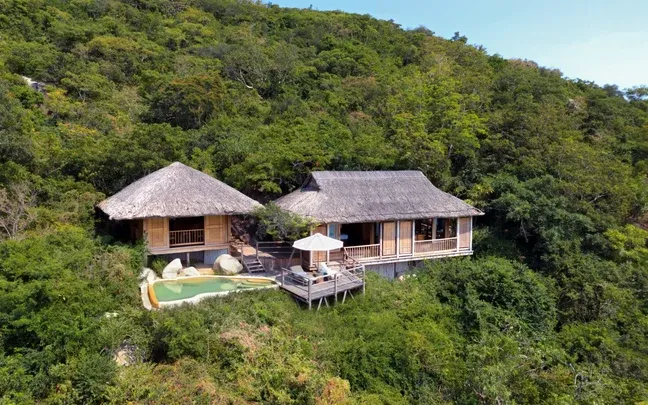 Set high on the hill with stunning panoramic views, the spacious Hill Top Reserve villa crowns Six Senses Ninh Van Bay and offers three full-sized bedrooms plus an infinity pool.